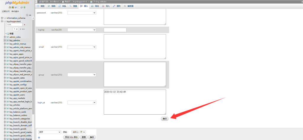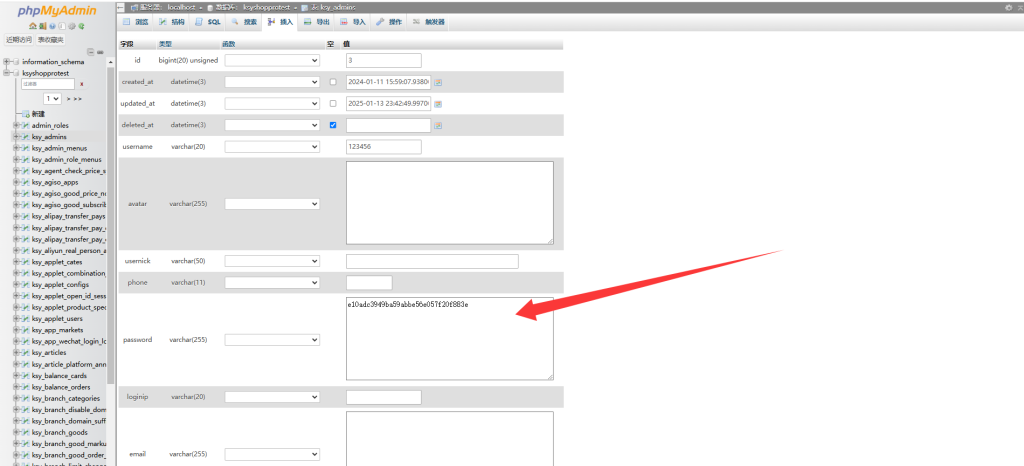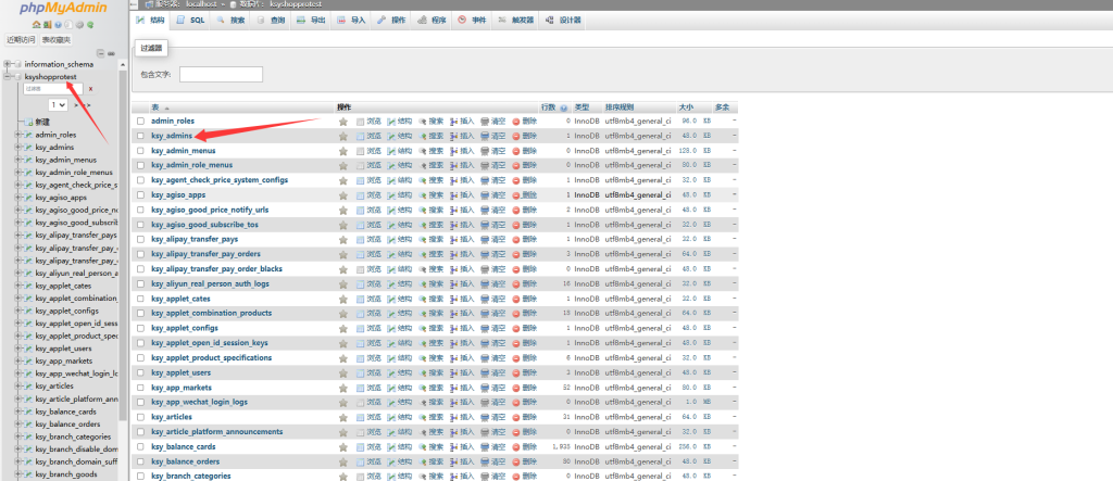 进入之后找到ksy_admins表,然后点击编辑