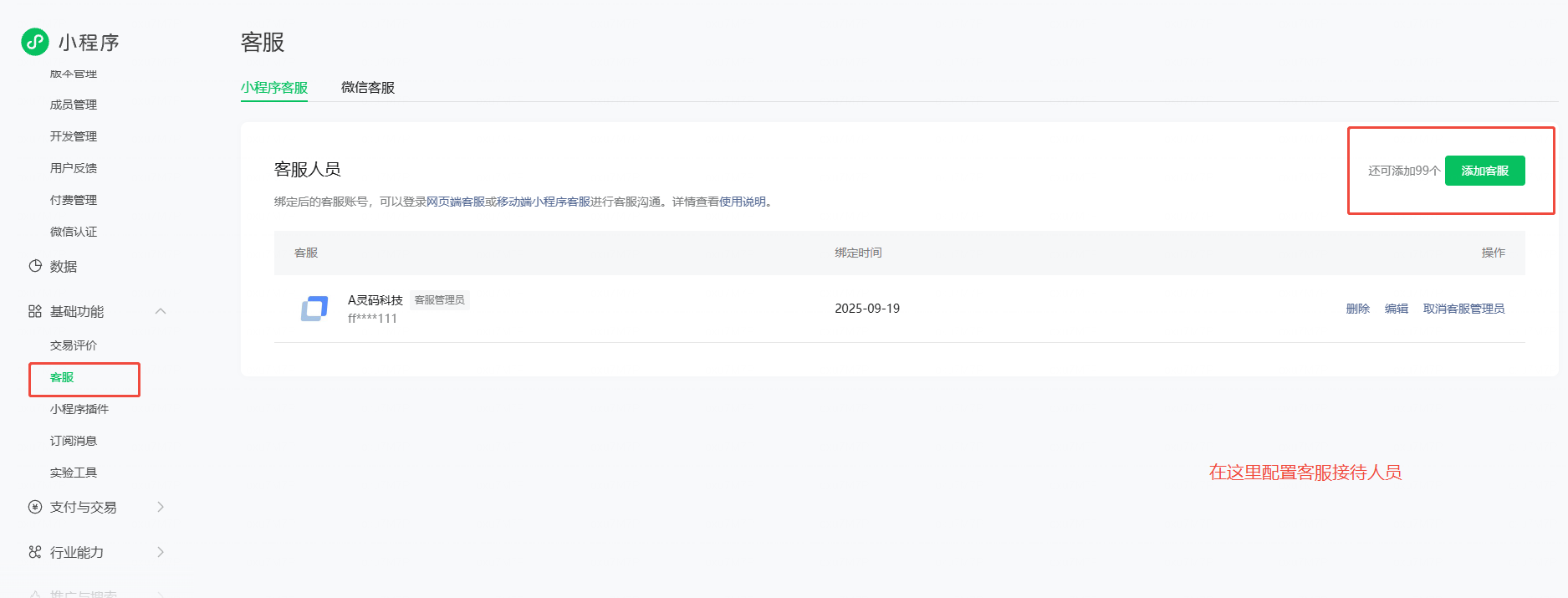 配置小程序接待客服
